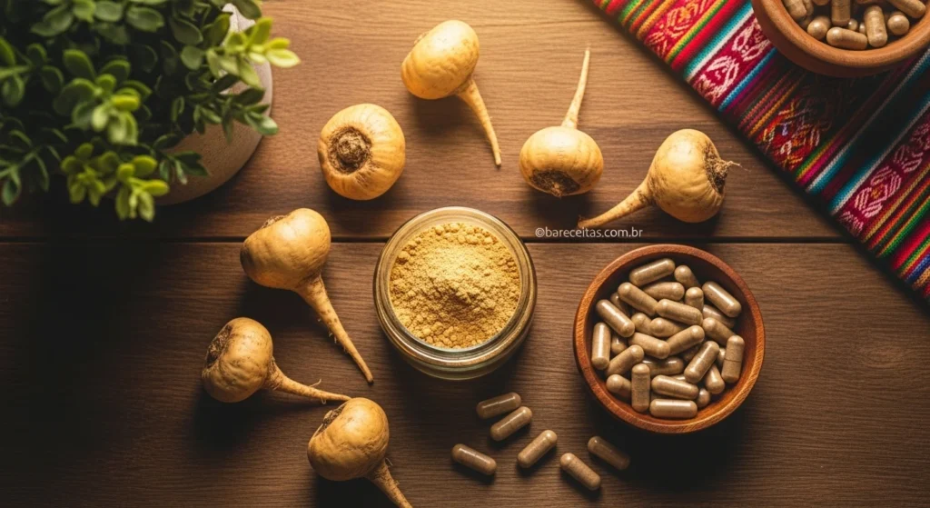 A maca pode ser uma aliada na redução do estresse e da ansiedade. Estudos sugerem que ela ajuda a melhorar o humor e aumentar a clareza mental. Para quem precisa de foco nos treinos ou nos estudos, esse efeito pode ser muito vantajoso!